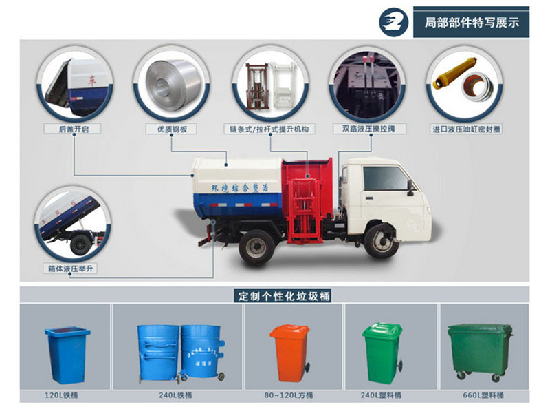 掛桶垃圾車 又名自裝卸式垃圾車, 由密封式垃圾廂、液壓系統(tǒng)、操作系統(tǒng)組成。舉升油制缸垃圾廂可自吊上放下,上下一次工作循環(huán)時間≤50s。一輛車可配幾十個垃圾桶,實現(xiàn)一臺車與多個垃圾桶聯(lián)合作業(yè),循環(huán)運輸,充分提高了車輛的運輸能力,特別適用于短途運輸,如環(huán)衛(wèi)部門對城鎮(zhèn)垃圾的清理、運輸?shù)取?/span>