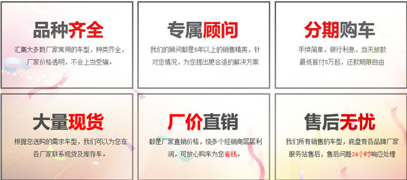 本廠常年儲(chǔ)備各類現(xiàn)車(chē),預(yù)付定金即可發(fā)車(chē),車(chē)到付全款,無(wú)憂售后,全國(guó)送車(chē)!